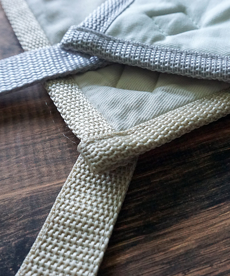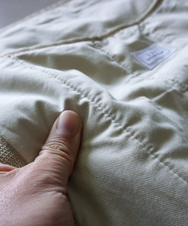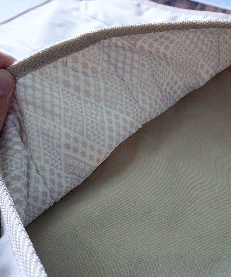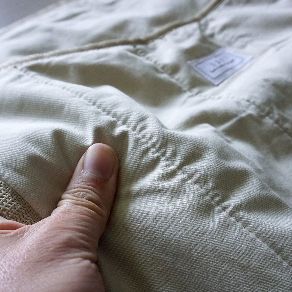 本体とポケット部分の生地はふっくらと厚みのある3層構造。
