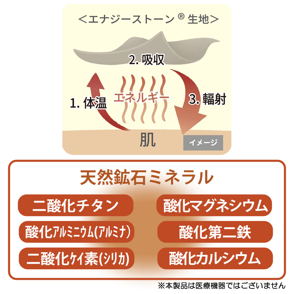 ポケット内側には、天然鉱石ミネラルを練り込んだ素材「エナジーストーン®」を使用しています。